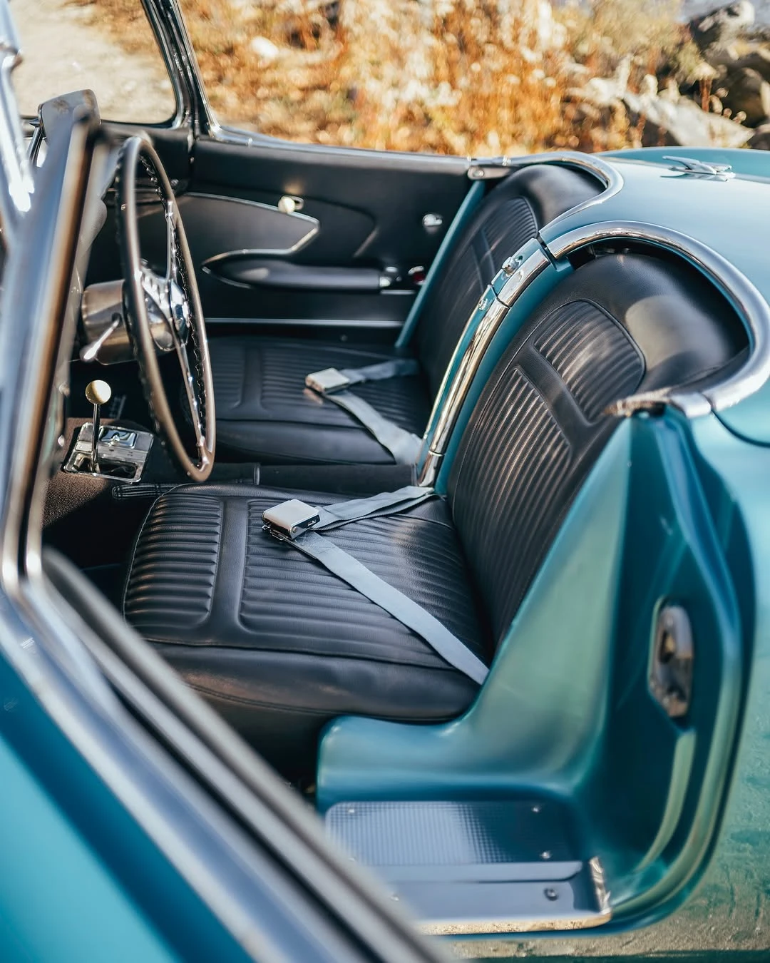 Inside, the Corvette’s interior exudes the same level of care and attention to detail, featuring period-correct materials and finishes that transport the driver back to the golden age of motoring. The cockpit-like layout, with its wraparound dashboard and prominent instrumentation, provides an immersive driving experience that perfectly complements the car’s dynamic performance.