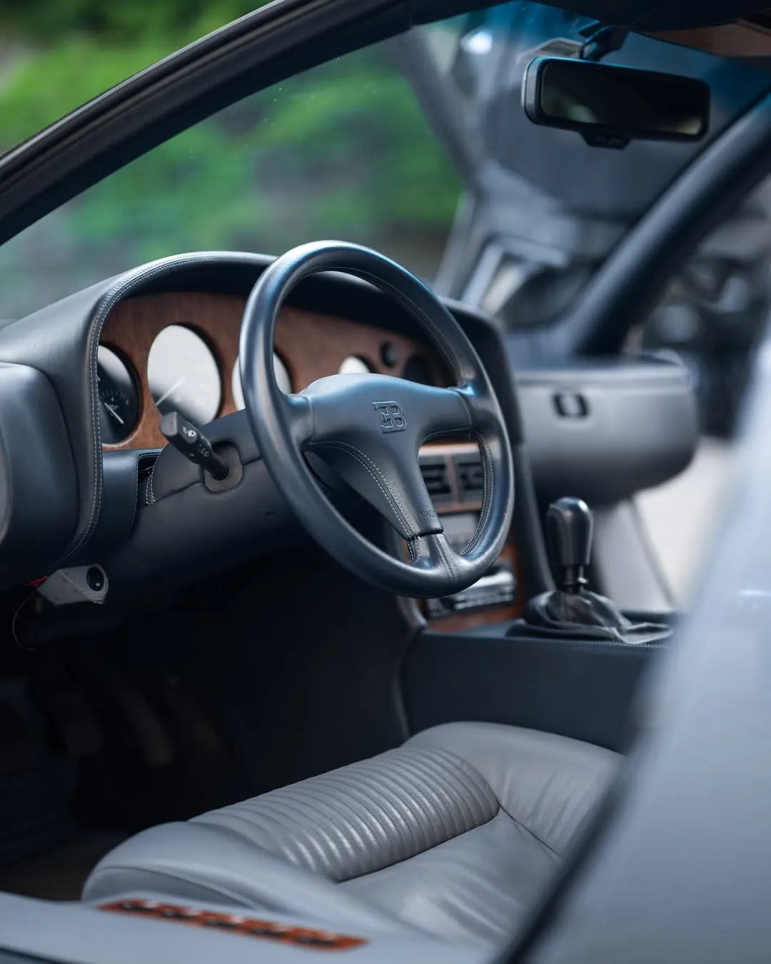The sleek design, with its wide stance and low profile, is a testament to the car’s aerodynamics and advanced engineering. Inside, the Poltrona Frau gray leather interior exudes luxury and comfort, perfectly matching the EB110’s performance-oriented nature with an air of sophistication. The attention to detail in the cabin reflects the high standards of Bugatti’s craftsmanship, with a minimalist, driver-focused layout and top-tier materials throughout.