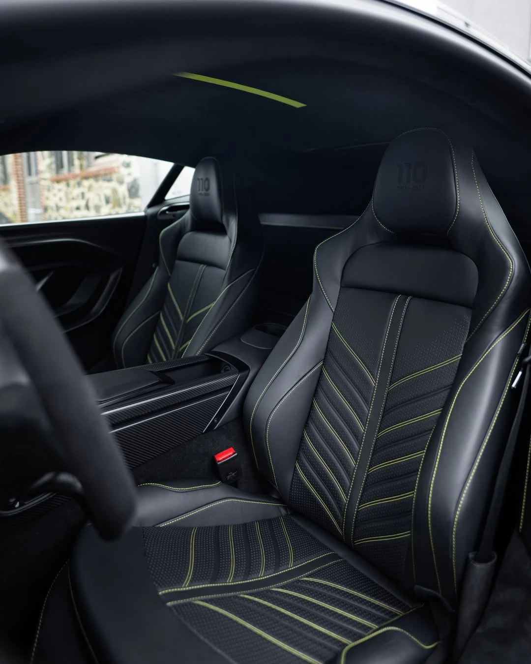 Inside, the Valour takes interior design to a new level with exquisite craftsmanship and attention to detail. The cabin is finished in Onyx Black, where the sleek leather and suede surfaces are complemented by AMR Lime contrast thread. This bold stitching not only adds a vivid pop of color but also nods to Aston Martin’s racing pedigree, referencing the AMR (Aston Martin Racing) line’s performance-oriented roots.
