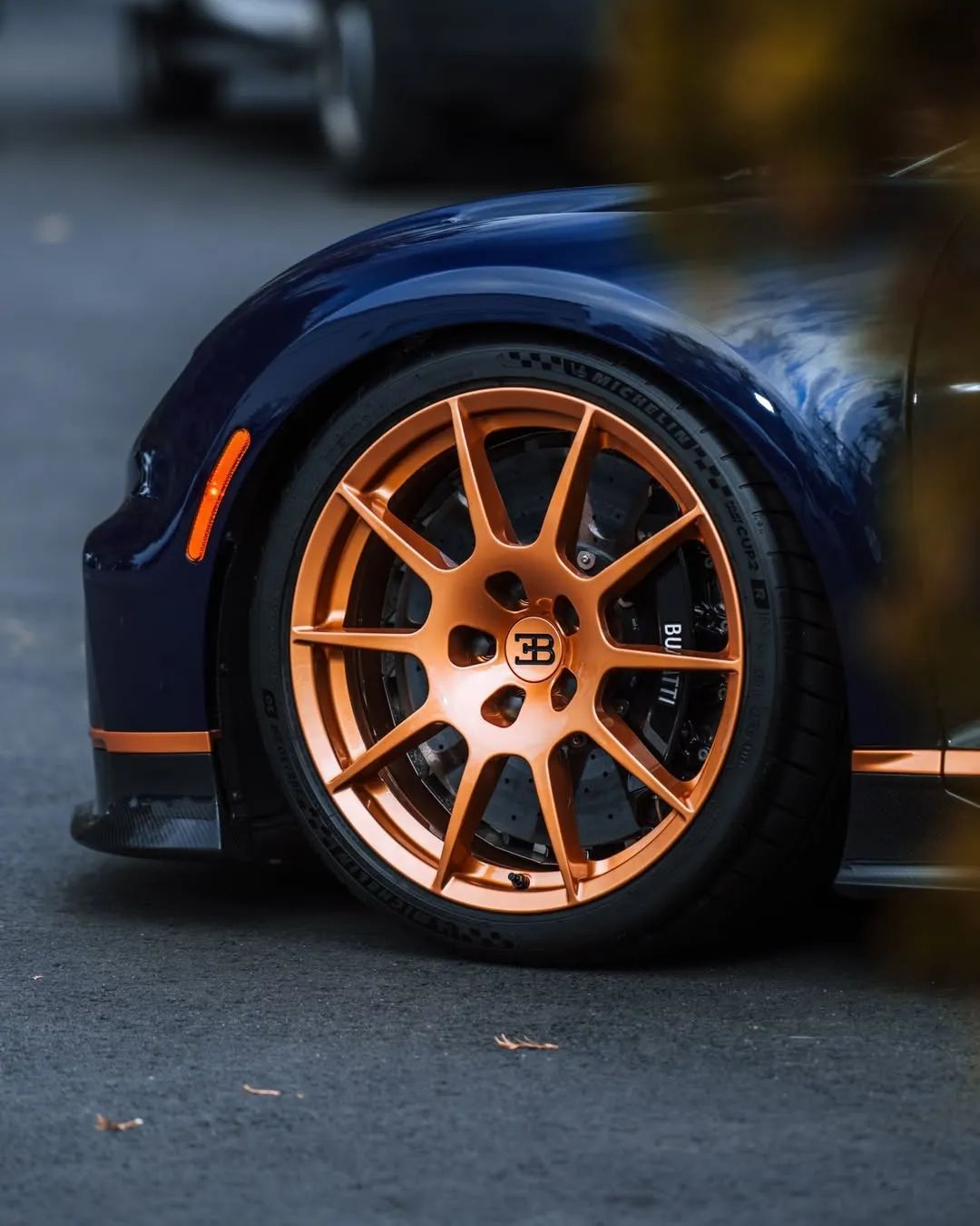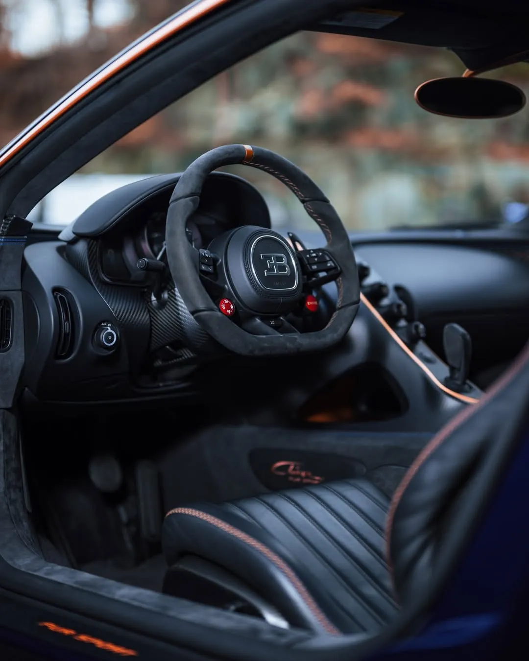 The car’s bold design is accentuated by its distinctive lines and aerodynamic enhancements, making it instantly recognizable as a Bugatti.