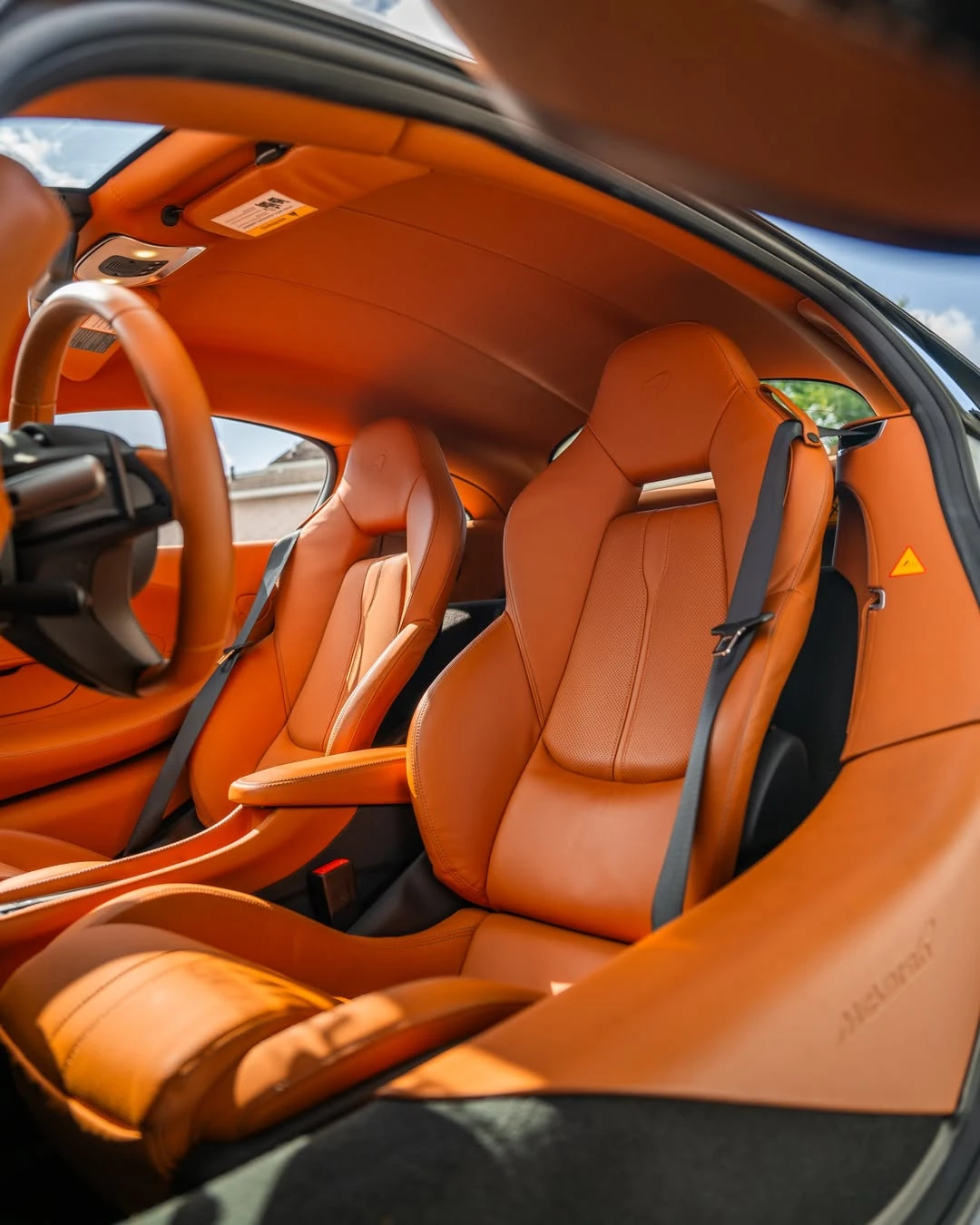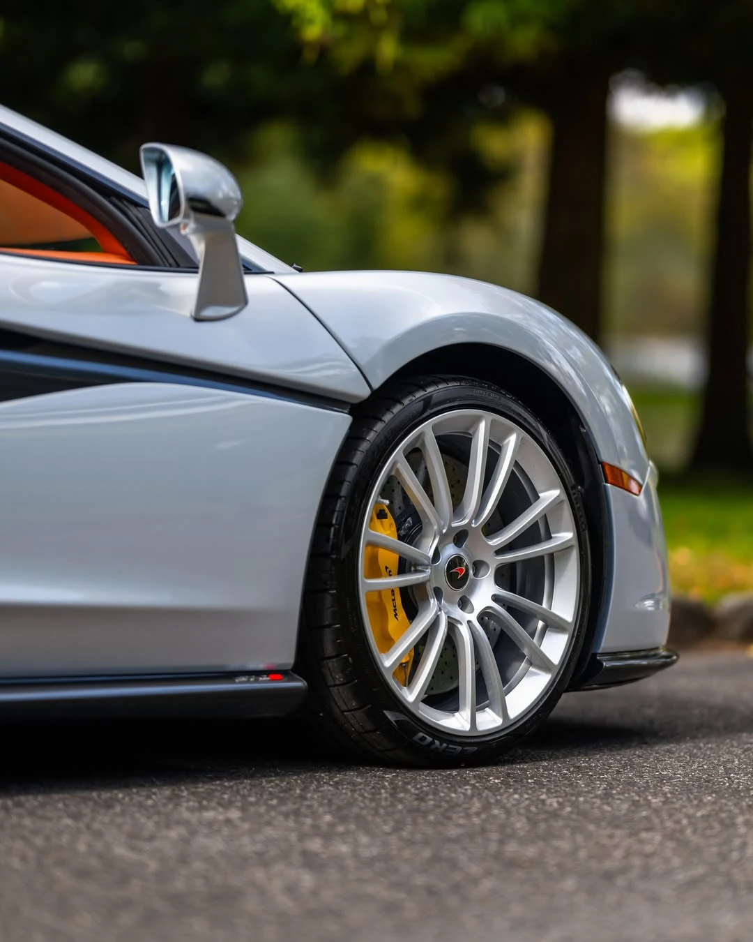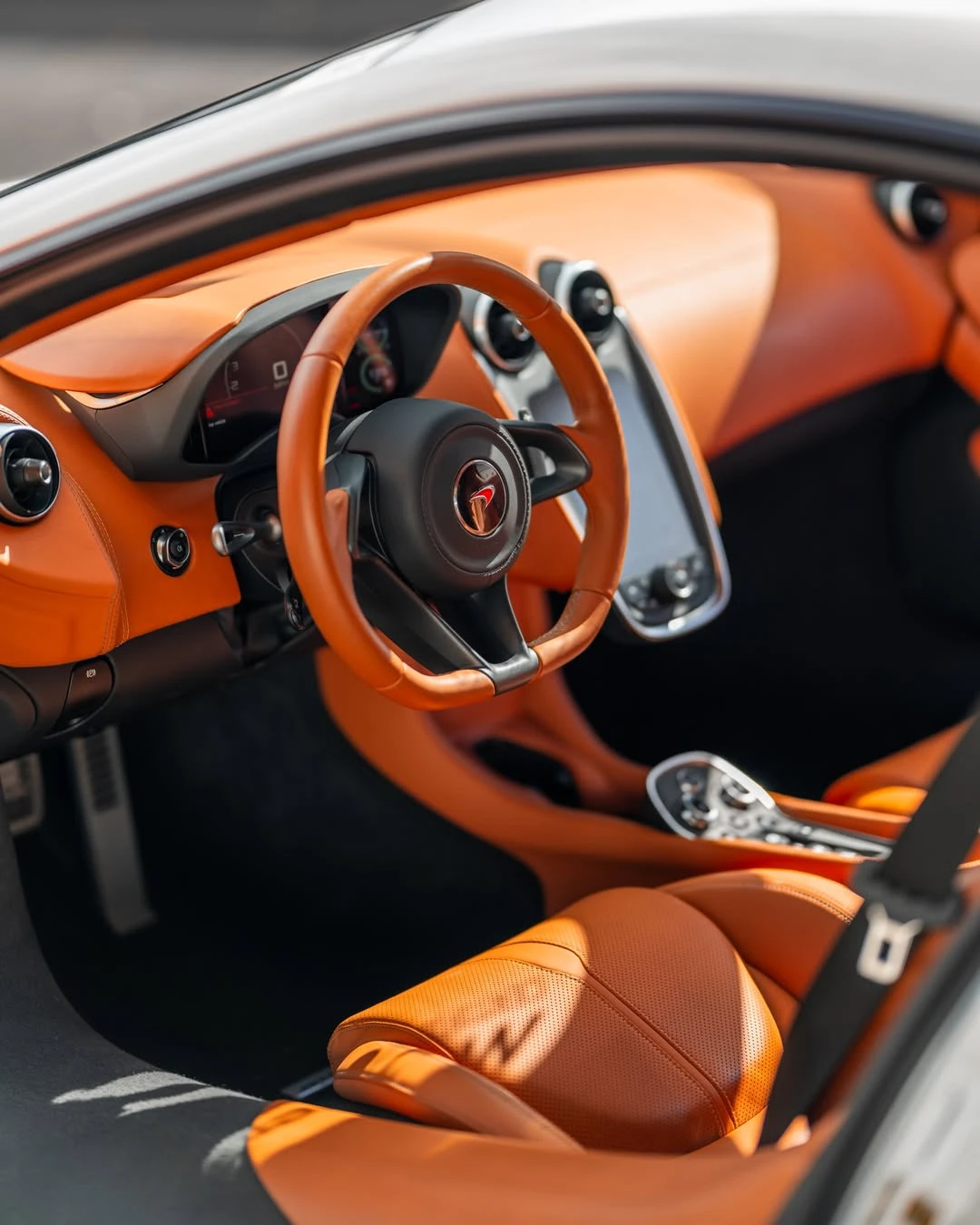 Inside, the Saddle Tan leather upholstery creates a luxurious, high-end atmosphere that contrasts beautifully with the sleek Ice Silver exterior. The cabin is focused on both style and performance, featuring sports-oriented seating that provides exceptional comfort and support. Every detail of the interior is crafted to enhance the driving experience, from the advanced infotainment system to the premium sound system. The 570S also incorporates driver-focused controls with a minimalist layout, ensuring that everything is within easy reach while keeping distractions to a minimum.