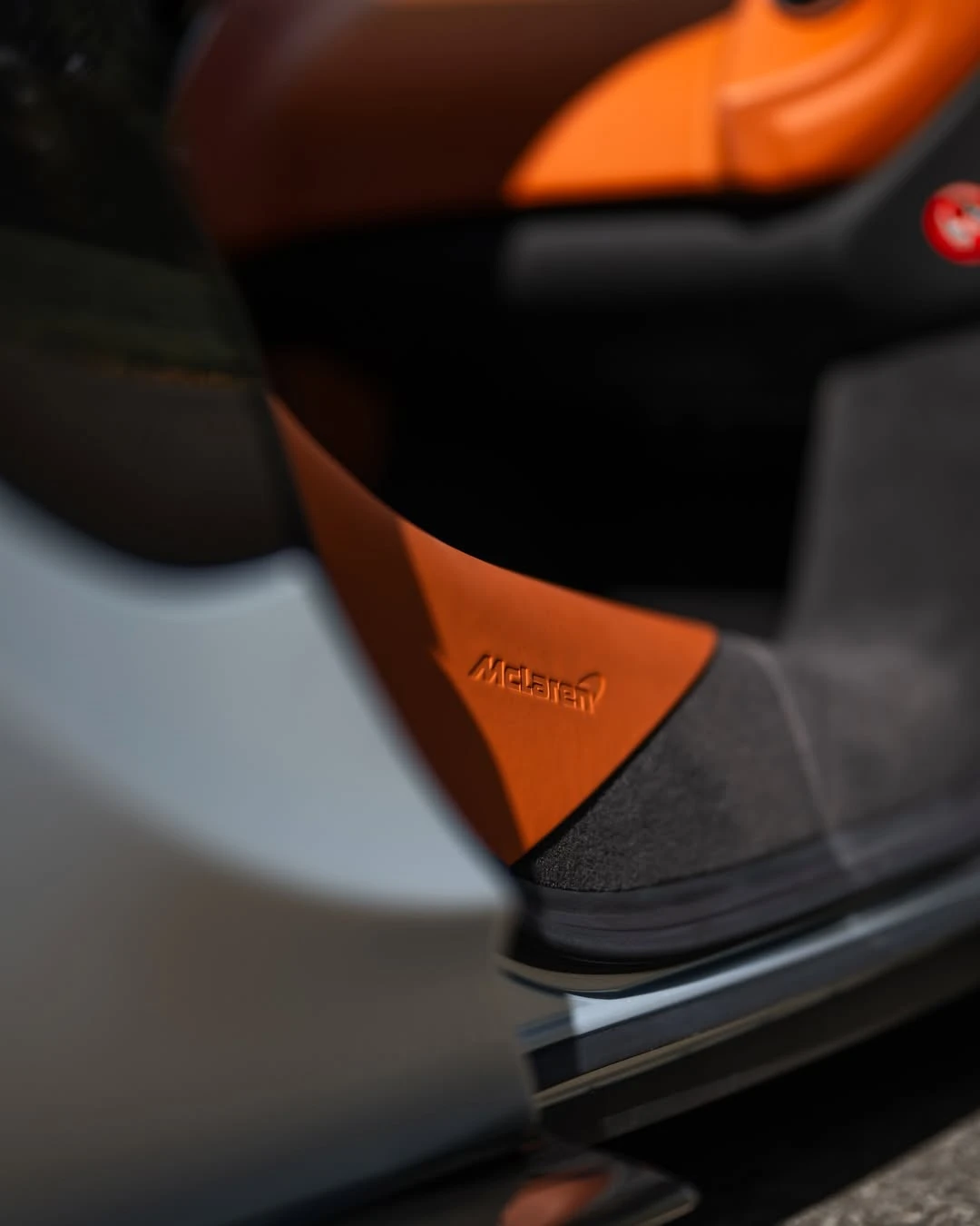 The exterior design of the McLaren 570S is breathtaking, with its sculpted lines, aggressive stance, and aerodynamic shape. The Ice Silver finish highlights the car’s dynamic contours, while the gloss black accents on the wheels, mirrors, and front splitter add a performanceoriented edge. With its signature dihedral doors and sleek rear design, the 570S commands attention wherever it goes.